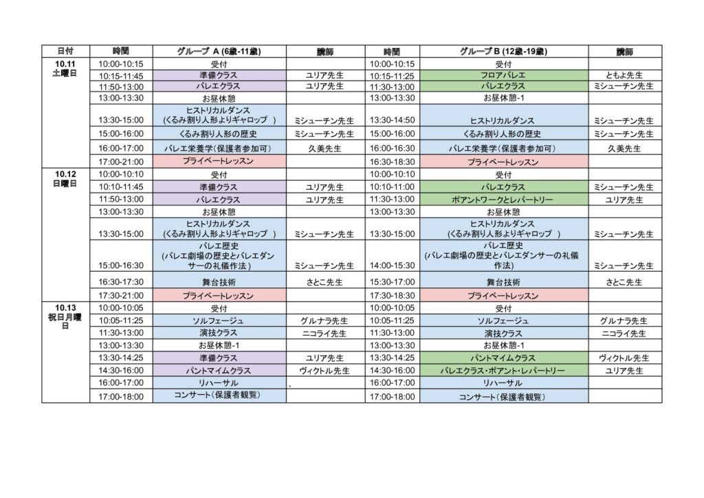 | 対象年齢 | Aクラス(6~11歳) Bクラス(12~19歳)※(バレエ歴2年以上) |